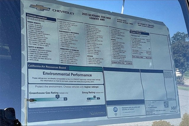 Bluetooth®, HANDS-FREE, BACKUP CAMERA, CRUISE CONTROL, HEATED SEATS, KEYLESS ENTRY, LEATHER SEATS, NAVIGATION, MULTI-ZONE CLIMATE CONTROL, PORTABLE AUDIO CONNECTION, POWER LOCKS, POWER WINDOWS, PREMIUM AUDIO, PREMIUM WHEELS, SECURITY SYSTEM, STEERING WHEEL CONTROLS, SUNROOF, TRAILER HITCH, Silverado 2500HD High Country, 4D Crew Cab, Duramax 6.6L V8 Turbodiesel, 10-Speed Automatic, 4WD, Black, Jet Black/Umber Leather, 120-Volt Bed Mounted Power Outlet, 120-Volt Interior Power Outlet, 170 Amp Alternator, 220 Amp Alternator, 4-Wheel Disc Brakes, 6 Rectangular Chromed Tubular Assist Steps, 7 Speakers, 720 Cold-Cranking Amps Heavy-Duty Battery, ABS brakes, Air Conditioning, Alloy wheels, AM/FM radio: SiriusXM with 360L, Apple CarPlay/Android Auto, Auto High-beam Headlights, Auto-dimming door mirrors, Auto-Dimming Inside Rear-View Mirror, Auto-dimming Rear-View mirror, Automatic temperature control, Bluetooth® For Phone, Bodyside moldings, BOSE Premium 7-Speaker Sound System, Brake assist, Bumpers: body-color, Chevrolet Connected Access Capable, Chrome Door Handles, Chrome Mirror Caps, Color-Keyed Carpeting Floor Covering, Compass, Deep-Tinted Glass, Delay-off headlights, Driver door bin, Driver Memory, Driver vanity mirror, Dual front impact airbags, Dual front side impact airbags, Durabed Pickup Bed, Electric Rear-Window Defogger, Electronic Stability Control, Emergency communication system: OnStar, Engine Block Heater, Exhaust Brake, Floor-Mounted Center Console, Front anti-roll bar, Front Bucket Seats, Front Carpeted Floor Mats, Front Center Armrest, Front Chrome Recovery Hooks, Front dual zone A/C, Front fog lights, Front LED Fog Lamps, Front Rain-Sensing Wipers, Front reading lights, Front wheel independent suspension, Fully automatic headlights, Garage door transmitter, Genuine wood console insert, Genuine wood dashboard insert, Genuine wood door panel insert, Heated 2nd Row Outboard Seats, Heated door mirrors, Heated front seats, Heated rear seats, Heated Steering Wheel, Heated steering wheel, Hill Descent Control, Illuminated entry, LED Cargo Area Lighting, Low tire pressure warning, Memory seat, Occupant sensing airbag, Off-Road Suspension, OnStar Services Capable, Outside temperature display, Overhead airbag, Overhead console, Panic alarm, Passenger door bin, Passenger vanity mirror, Perforated Leather Seat Trim, Polished Exhaust Tip, Power Door Locks, Power door mirrors, Power driver seat, Power passenger seat, Power steering, Power windows, Preferred Equipment Group 3LZ, Premium audio system: Chevrolet Infotainment 3 Premium, Push Button Start, Radio: Chevrolet Infotainment 3 Premium System, Rain sensing wipers, Rear Carpeted Floor Mats, Rear Cross Traffic Alert, Rear reading lights, Rear seat center armrest, Rear step bumper, Rear Wheelhouse Liners, Rear window defroster, Remote keyless entry, Remote Vehicle Starter System, Security system, Speed control, Speed-sensing steering, Split folding rear seat, Standard Tailgate, Steering Wheel Audio Controls, Steering wheel mounted audio controls, Suspension Package, Tachometer, Telescoping steering wheel, Tilt steering wheel, Traction control, Trailer Camera Provisions, Trip computer, Turn signal indicator mirrors, Unauthorized Entry Theft-Deterrent System, Universal Home Remote, Variably intermittent wipers, Ventilated front seats, Voltmeter, Wheels: 20 8-Spoke Polished, Wi-Fi Hotspot Capable, Winter Grille Cover, Wireless Charging, Wireless Phone Projection, Wrapped Steering Wheel, Z71 Off-Road Package.