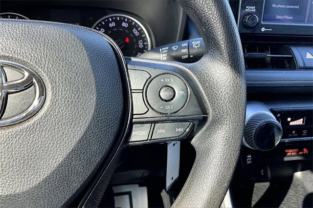 RECALL NOTICE: Some vehicles available for sale may have unrepaired safety recalls issued by the manufacturer. To check the recall status of any vehicle, please visit www.nhtsa.gov/recalls. **LOCAL TRADE**, PREMIUM AUDIO, PREMIUM WHEELS, SECURITY SYSTEM, RAV4 LE, 4D Sport Utility, 2.5L 4-Cylinder DOHC Dual VVT-i, 8-Speed Automatic, FWD, Black Cloth, 17 Steel Wheels, 4-Wheel Disc Brakes, 6 Speakers, ABS brakes, Air Conditioning, AM/FM radio: SiriusXM, AM/FM Stereo, Apple CarPlay/Android Auto, Auto High-beam Headlights, Axle Ratio: 3.177, Brake assist, Bumpers: body-color, Driver door bin, Driver vanity mirror, Dual front impact airbags, Dual front side impact airbags, Electronic Stability Control, Emergency communication system, Exterior Parking Camera Rear, Fabric Seat Trim, Four wheel independent suspension, Front anti-roll bar, Front Bucket Seats, Front Center Armrest, Front reading lights, Illuminated entry, Knee airbag, Low tire pressure warning, Occupant sensing airbag, Outside temperature display, Overhead airbag, Overhead console, Panic alarm, Passenger door bin, Passenger vanity mirror, Power door mirrors, Power steering, Power windows, Radio data system, Rear anti-roll bar, Rear seat center armrest, Rear window defroster, Rear window wiper, Remote keyless entry, Roof rack: rails only, Speed control, Speed-sensing steering, Split folding rear seat, Spoiler, Steering wheel mounted audio controls, Tachometer, Telescoping steering wheel, Tilt steering wheel, Traction control, Trip computer. 27/35 City/Highway MPG
