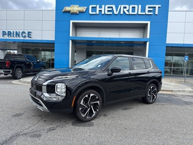 RECALL NOTICE: Some vehicles available for sale may have unrepaired safety recalls issued by the manufacturer. To check the recall status of any vehicle, please visit www.nhtsa.gov/recalls. PREMIUM AUDIO, PREMIUM WHEELS, SECURITY SYSTEM, Outlander SE, 4D Sport Utility, 2.5L 4-Cylinder DOHC, CVT, 4WD, Black, 3rd row seats: split-bench, 4-Wheel Disc Brakes, 5.694 Axle Ratio, 6 Speakers, ABS brakes, Air Conditioning, Alloy wheels, AM/FM radio: SiriusXM, Android Auto & Apple CarPlay, Auto High-beam Headlights, Automatic temperature control, Brake assist, Bumpers: body-color, Driver door bin, Driver vanity mirror, Dual front impact airbags, Dual front side impact airbags, Electronic Stability Control, Emergency communication system: Mitsubishi Connect w/ 24-month trial, Exterior Parking Camera Rear, Four wheel independent suspension, Front anti-roll bar, Front Bucket Seats, Front Center Armrest w/Storage, Front dual zone A/C, Front fog lights, Front reading lights, Fully automatic headlights, Headlight cleaning, Heated door mirrors, Heated Front Bucket Seats, Heated front seats, Illuminated entry, Knee airbag, Leather Shift Knob, Leather steering wheel, Low tire pressure warning, Navigation System, Occupant sensing airbag, Outside temperature display, Overhead airbag, Overhead console, Panic alarm, Passenger door bin, Passenger vanity mirror, Power door mirrors, Power driver seat, Power Liftgate, Power steering, Power windows, Radio data system, Radio: AM/FM 9.0 Navigation w/Smartphone Link, Rain sensing wipers, Rear anti-roll bar, Rear seat center armrest, Rear side impact airbag, Rear window defroster, Rear window wiper, Reclining 3rd row seat, Remote keyless entry, Security system, Speed control, Speed-Sensitive Wipers, Split folding rear seat, Spoiler, Steering wheel mounted audio controls, Synthetic Leather Seat Trim, Tachometer, Telescoping steering wheel, Tilt steering wheel, Traction control, Trip computer, Turn signal indicator mirrors, Variably intermittent wipers, Wheels: 20 Two-Tone Alloy. 24/30 City/Highway MPG