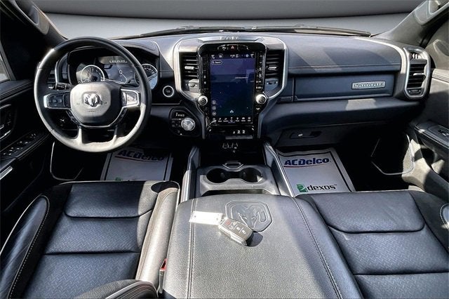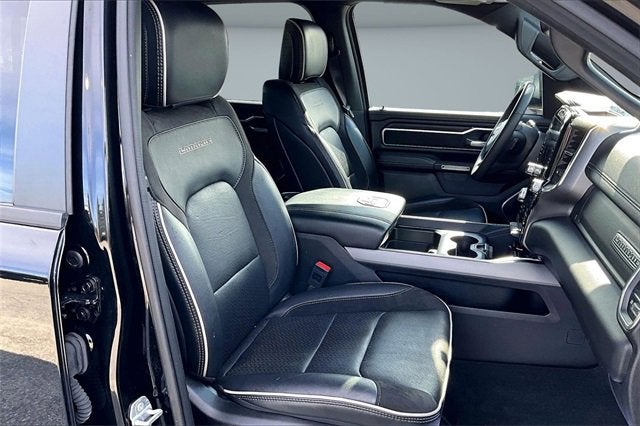RECALL NOTICE: Some vehicles available for sale may have unrepaired safety recalls issued by the manufacturer. To check the recall status of any vehicle, please visit www.nhtsa.gov/recalls. PREMIUM AUDIO, PREMIUM WHEELS, SECURITY SYSTEM, 1500 Laramie, 4D Crew Cab, 3.0L I6, 8-Speed Automatic, 4WD, Diamond Black Crystal Pearlcoat, Black Leather, 10 Speakers, 3 Rear Seat Head Restraints, 3.55 Rear Axle Ratio, 4 Way Front Headrests, 4-Wheel Disc Brakes, 4G LTE Wi-Fi Hot Spot, ABS brakes, Air Conditioning, Alloy wheels, AM/FM radio: SiriusXM with 360L, Apple CarPlay, Apple CarPlay/Android Auto, Audio memory, Auto High-beam Headlights, Auto Power-Folding Mirrors, Auto-dimming door mirrors, Auto-Dimming Exterior Driver Mirror, Auto-dimming Rear-View mirror, Automatic temperature control, Brake assist, Bumpers: chrome, Chrome Exterior Mirrors, Compass, Connected Travel & Traffic Services, Connectivity - US/Canada, Convex Wide-Angle Exterior Mirror Insert, Delay-off headlights, Driver door bin, Driver Seat Memory, Driver vanity mirror, Dual front impact airbags, Dual front side impact airbags, Electronic Stability Control, Exterior Mirrors Courtesy Lamps, Exterior Mirrors w/Heating Element, Exterior Mirrors w/Memory, Exterior Mirrors w/Supplemental Signals, Front anti-roll bar, Front Center Armrest w/Storage, Front dual zone A/C, Front fog lights, Front License Plate Bracket, Front reading lights, Front Seat Back Map Pockets, Front wheel independent suspension, Fully automatic headlights, Garage door transmitter, Google Android Auto, GPS Antenna Input, GPS Navigation, HD Radio, Heated door mirrors, Heated Front Seats, Heated front seats, Heated rear seats, Heated Steering Wheel, Heated steering wheel, Illuminated entry, Integrated Voice Command w/Bluetooth®, Laramie Level 1 Equipment Group, Leather steering wheel, Leather Trim 40/20/40 Bench Seat, Low tire pressure warning, Manufacturer's Statement of Origin, Memory seat, Navigation System, Occupant sensing airbag, Outside temperature display, Overhead airbag, Overhead console, Panic alarm, ParkView Rear Back-Up Camera, Passenger door bin, Passenger vanity mirror, Power 2-Way Driver Lumbar Adjust, Power 2-Way Passenger Lumbar Adjust, Power Adjust 8-Way Front Passenger Seat, Power door mirrors, Power driver seat, Power passenger seat, Power steering, Power windows, Quick Order Package 21H Laramie, Radio data system, Radio: Uconnect 5 Nav w/12.0 Display, Rain Sensitive Windshield Wipers, RAM Grille Badge - Chrome, Rear anti-roll bar, Rear reading lights, Rear seat center armrest, Rear step bumper, Remote keyless entry, Remote Tailgate Release, Security system, SiriusXM w/360L, Speed control, Split folding rear seat, Steering wheel mounted audio controls, Tachometer, Telescoping steering wheel, Tilt steering wheel, Traction control, Trip computer, Turn signal indicator mirrors, USB Host Flip, Variably intermittent wipers, Ventilated Front Seats, Ventilated front seats, Voltmeter, Wheels: 20 x 9 Premium Paint/Polish.
