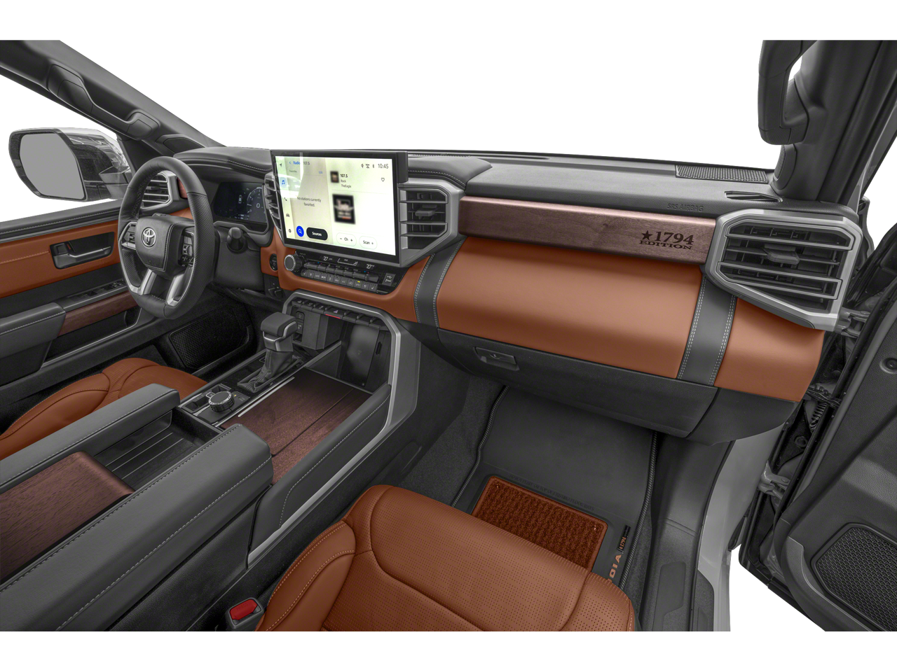 Inside, the Sequoia 1794 Edition is a true sanctuary, with premium leather seating, a stunning 14-inch Toyota Audio Multimedia system with JBL premium audio, and a host of advanced safety features like the Safety Connect emergency communication system and the Blind Spot Monitor with Rear Cross-Traffic Alert.